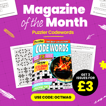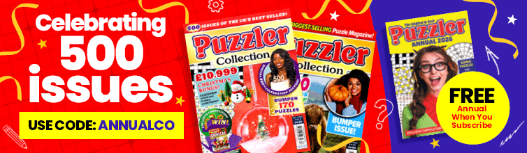 A bumper selection of Puzzler favourites including wordsearch, kriss kross, crossword, codeword, Sudoku and more!